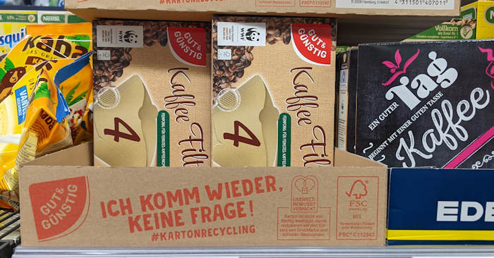 Jedem neuen Mitarbeiter erkläre ich während der Einweisung, dass es solche Produkte gibt und dass man sie dann entsprechend mit der richtigen Seite nach vorne in die Regale stapelt. Um das zu veranschaulichen, zeige ich immer an den Kaffeefiltern unserer Eigenmarke, wie das gemeint ist.