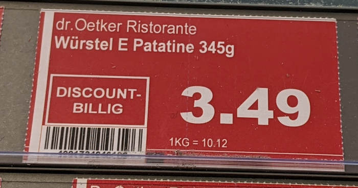 Was neu ist, ist der hohe Preis. Der liegt regulär in der Höhe, deshalb ist das rote Schild etwas irreführend - aber wenn man wartet, gibt es die ristorante auch regelmäßig noch für 1,99 im vollsortimenter.