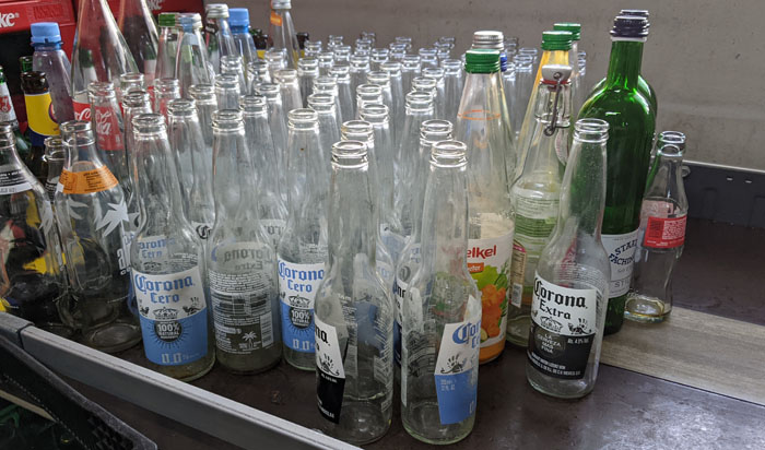Nur zwei Minuten später kam ich am Flaschentisch unseres Leergutautomaten vorbei und musste lachen. Wie zur Bekräftigung meiner Corona-Aussage hatte einer der letzten Kunden ein paar wenige Corona-Flaschen abgegeben.