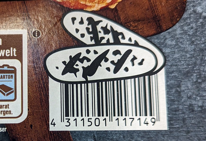 Auf einer Würzmischung von Podrava hat Honza diesen Strichcode entdeckt, der mit seiner weißen Umrandung wie eine Schüssel anmuten möchte. Könnte natürlich auch ein henkelloser Topf sein – für solche Spekulationen ist da wohl der Betrachter zuständig.