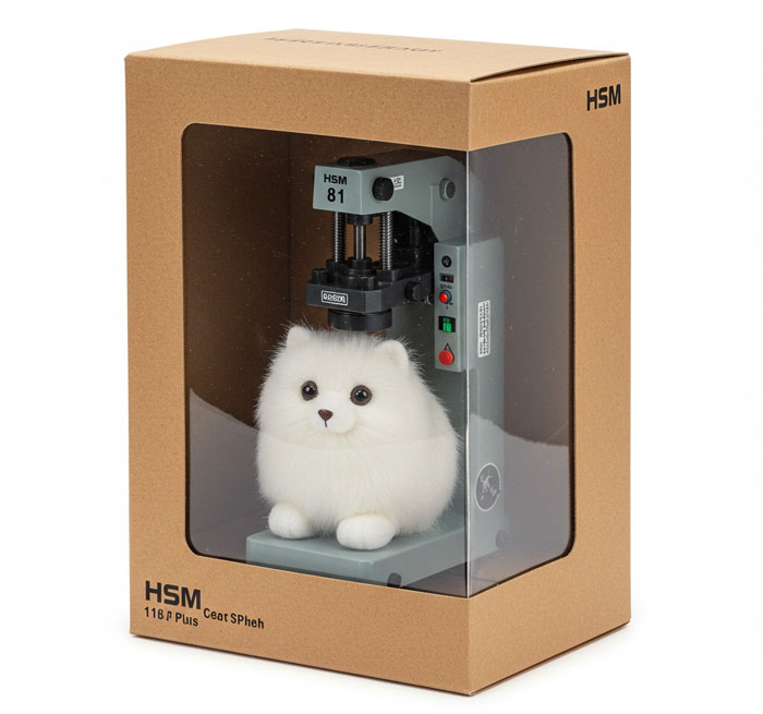 Für ein Projekt wollte ich von ChatGPT ein Bild rendern lassen, auf dem eine Papppresse von HSM, wie sie viele Supermärkte verwenden, als ein Spielzeug dargestellt wird. So weit, so gut.