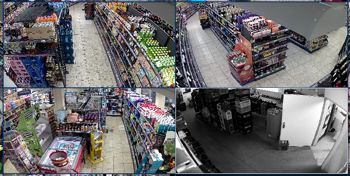 Warum die Kamera, die hier den Lagereingang mitsamt Leergutautomat im Blick hat, trotz ausreichender Beleuchtung (also kein IR-Modus) neuerdings ein Schwarzweißbild liefert, erschließt sich mir nicht.