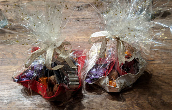 Da die klassischen Präsentkörbe zumindest bei uns eine aussterbende Spezies sind und wir inzwischen auch schon fast gar keine brauchbaren Körbe mehr haben, um überhaupt noch welche zu erstellen, suchen wir manchmal nach Alternativen, wenn man denn unbedingt mal ein Geschenk braucht.