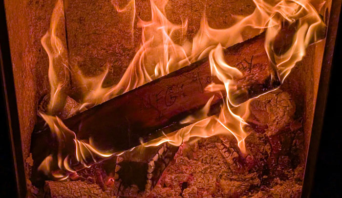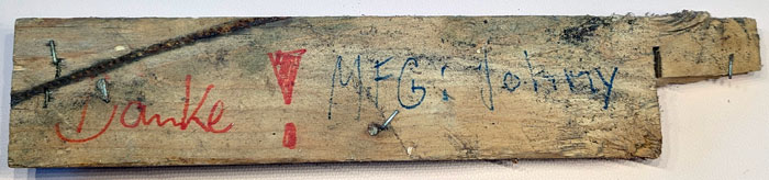 Zusammen mit anderem Holz lagen nun auch die Teile dieser Kisten einige Jahre in unserem Brennholzlager und bei diesem Brettchen musste ich einfach vor der feierlichen Einäscherung noch ein Erinnerungsfoto machen. Damit sind wir nun endgültig geschiedene Leute.