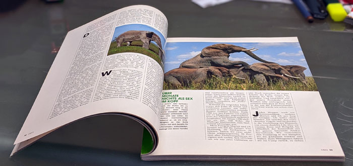Das Heft ist knapp 32 Jahre alt und im Inneren sind fast 50 Seiten den großen Rüsselviechern gewidmet, zu großen Teilen mit wunderschönen Fotos.