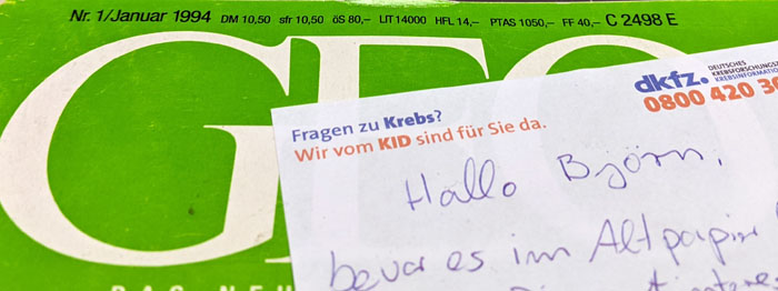 Ganz lieben Dank an einen anonym zu bleiben wünschenden Blogleser, der seine alten Zeitschriften ausgemistet und dieses GEO-Magazin zu meinen Gunsten vor dem Altpapier gerettet hat.