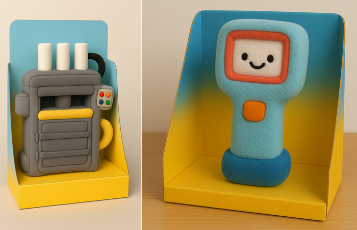 Plüsch-Papppresse:So niedlich, dass selbst die widerspenstigste Kartonage freiwillig kuschelig wird.
