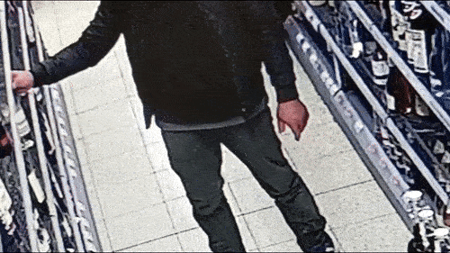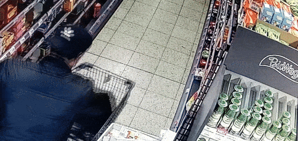 Ein Mann hat sich eine Umhängetasche, natürlich von Edeka mit Pandabär, mit Alkoholflaschen gefüllt und konnte leider unerkannt mit der Beute entkommen. Die Warensicherungsanlage hatte zwar den Alarm ausgelöst, aber das hilft nicht immer – vor allem dann nicht, wenn die Täter rausrennen und eine unmittelbare Fluchtmöglichkeit haben, ein bereitgestelltes Fahrrad zum Beispiel.