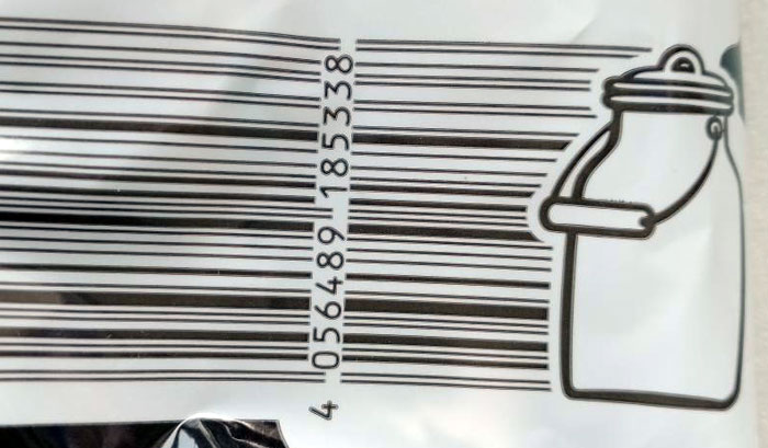 Auf der laktosefreien, entrahmten Milch von Hacendano, einer Eigenmarke der spanischen Supermarktkette Mercadona, hatte Melanie diesen Strichcode mit einer Kuh auf der Weide, die aus den Strichen wächst, entdeckt.