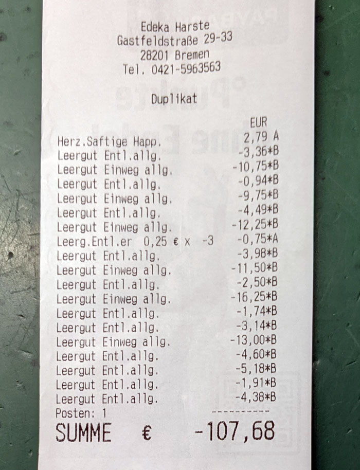 Wie kann es sein, dass der Automat die Annahme verweigert? Die Abweichungen in der Form (wenn ich sie mir nicht sogar nur einbilde), sind so minimal, dass sie im Toleranzbereich der Flaschenerkennung liegen müssten.