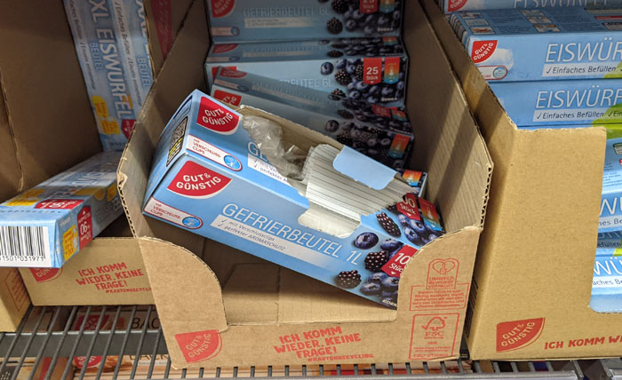 Warum Kunden immer und immer und immer wieder die Packungen von Müllbeuteln, Gefrierbeuteln, Backpapier, Frischhalte- und Aluminiumfolie aufreißen, werde ich vermutlich nie begreifen. Was erwarten die Menschen in den Packungen anderes zu finden außer Müllbeutel, Gefrierbeutel, Backpapier, Frischhalte- und Aluminiumfolie? Also ernsthaft?