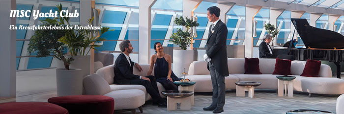 Mit der Entscheidung für eine Suite oder Kabine im MSC Yacht Club eröffnen Sie sich eine Kreuzfahrt, die Luxus und Exklusivität perfekt vereint. Der Yacht Club ist ein Rückzugsort, der das Gefühl vermittelt, auf einer privaten Yacht zu reisen – kombiniert mit den unbegrenzten Möglichkeiten eines großen Kreuzfahrtschiffs. Mehr Infos gibt es hier.