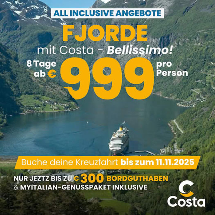 Buche bis zum 11.11.2025: 8 Tage ab € 999 pro Person