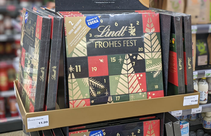 Die Lindt-Adventskalender mit dem (mindestens) 5-Euro-Edeka-Gutschein hat sich im Allgemeinen und auch bei uns inzwischen zu einem Renner entwickelt. Nachdem wir immer eher vorsichtig waren, hatten wir im vergangenen Jahr bereits zwei Displays mit den Kalendern hier im Laden untergebracht.