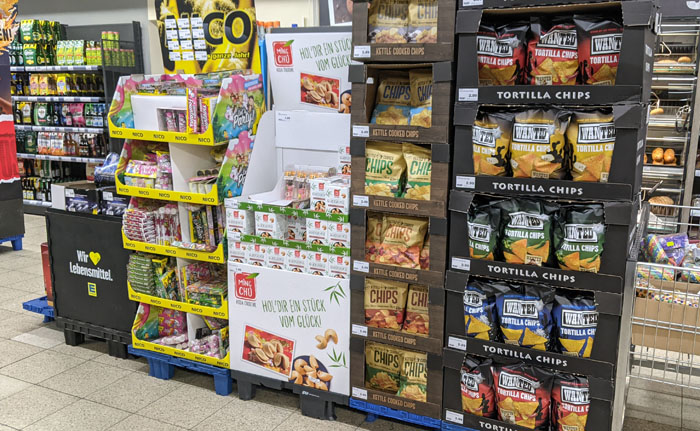 Hier zum Beispiel standen unterschiedliche Produkte aufstellerweise parallel im Markt, aus den Nissin Cup Noodles haben wir den