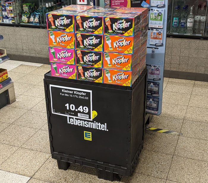 Es ist unfassbar. Diese kleinen Fläschchen haben wir immer zum Freimarktsumzug in großen Mengen verkauft. Kleine Klopfer hätten wir letztes Jahr dutzendfach verkaufen können, aber außer den paar Paketen Regalbestand, die ratzfatz ausverkauft waren, hatten wir keine da.